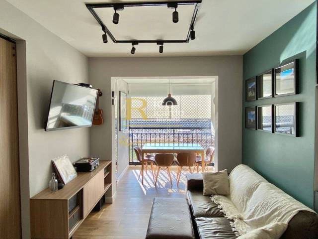 Apartamento todo com piso em porcelanato , com bancadas em quartzo branco na cozinha, banheiros e lavanderia, além de armário embutido de madeira teca com portas reflecta na suíte, além de armário embutido e moveis planejados no escritório, cozinha, banheiro e lavanderia.